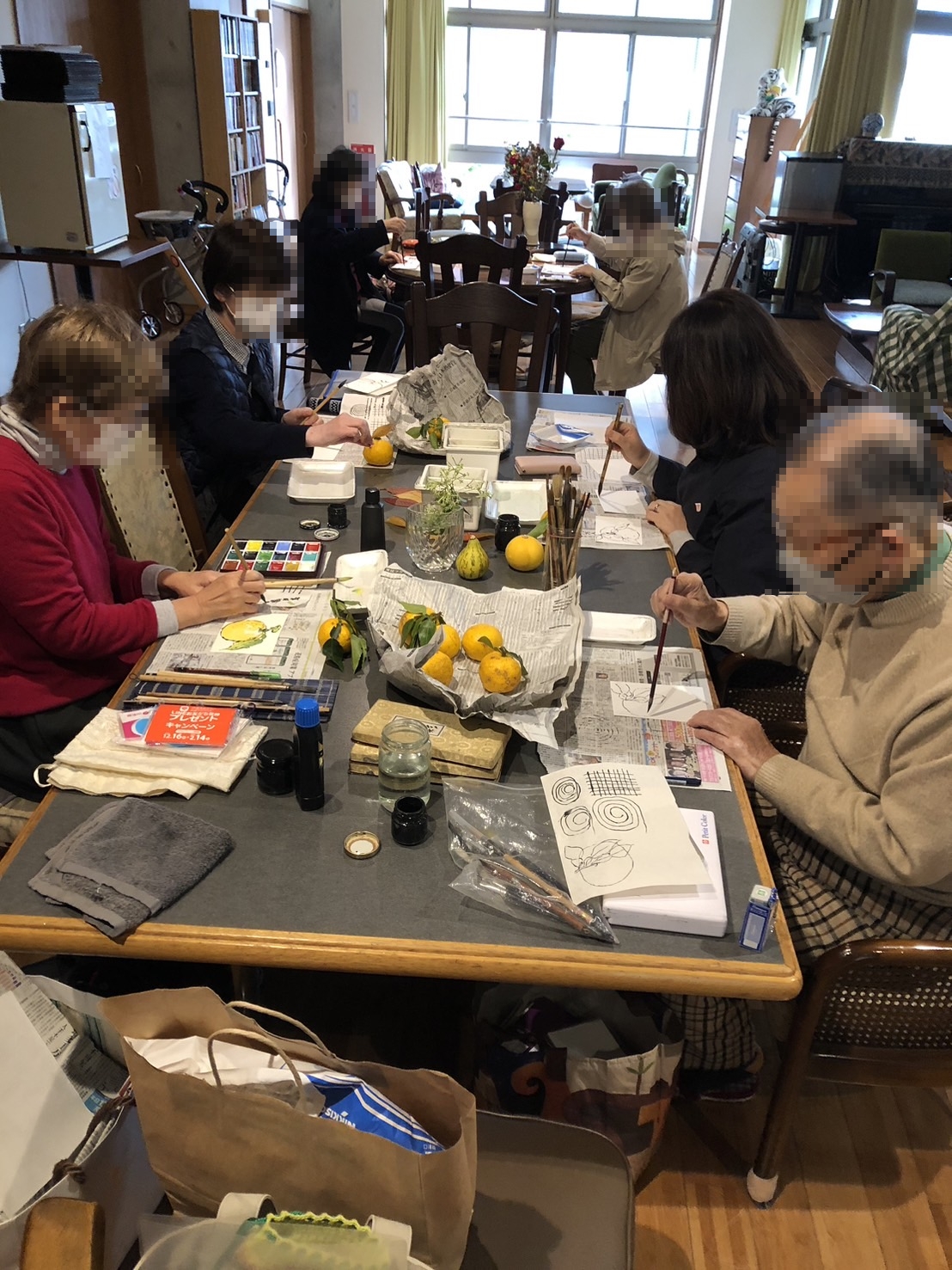 画材は柚子、バラ、共研公園の桜の落ち葉🍂など。