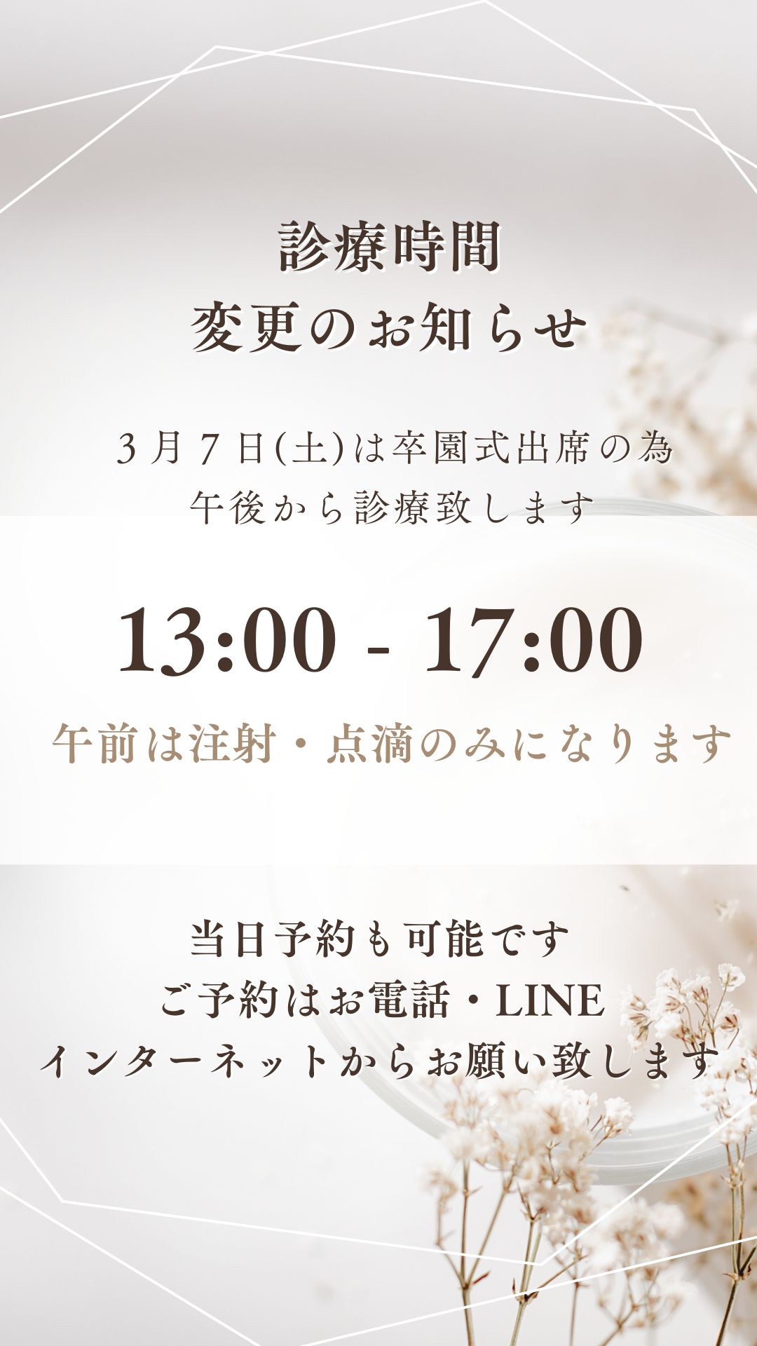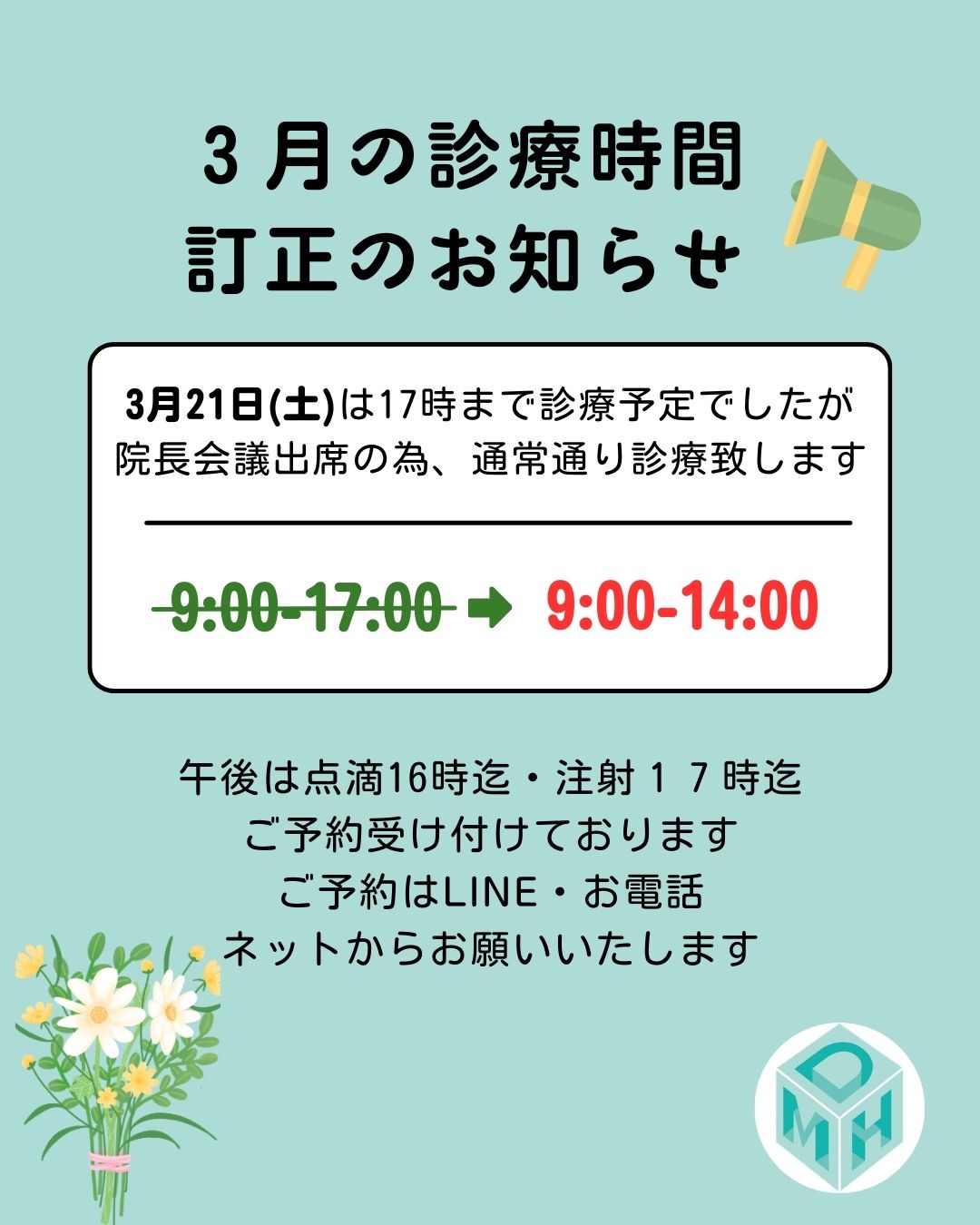 3月の診療時間訂正のお知らせ🙇‍♀️