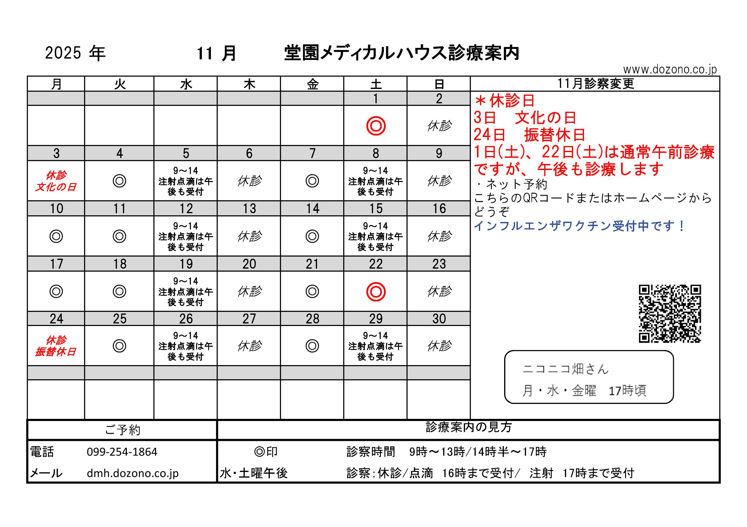 🍀3(月)文化の日、24日(月)は振替休日の為休診です